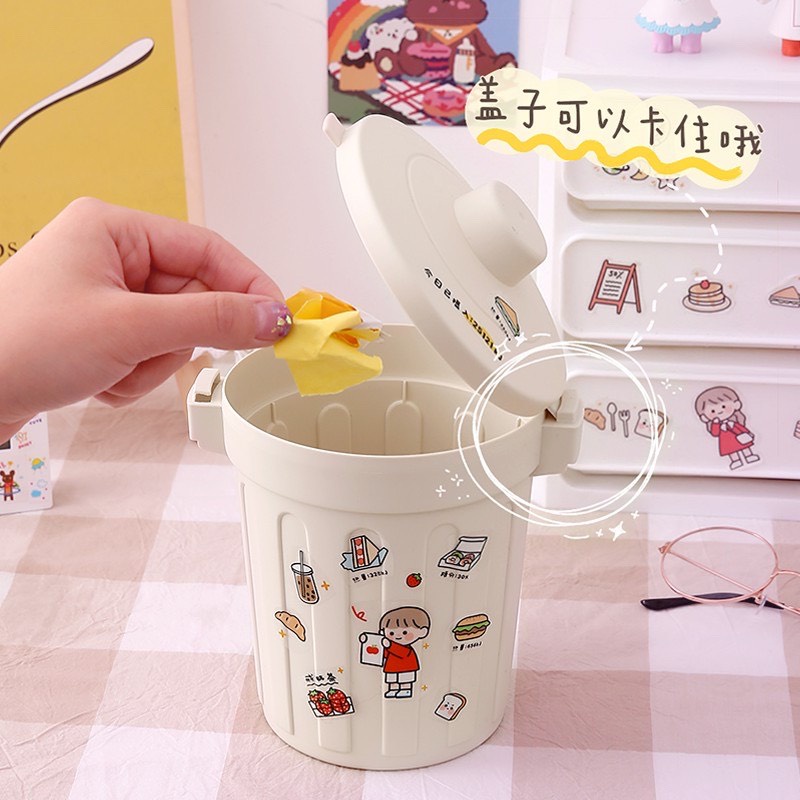 Mô tả chi tiết sản phẩm: Thùng rác mini, hộp đựng nhỏ hình chiếc xô để bàn học bàn làm việc có nắp đậy tiện lợi 2 màu ghi và trắng