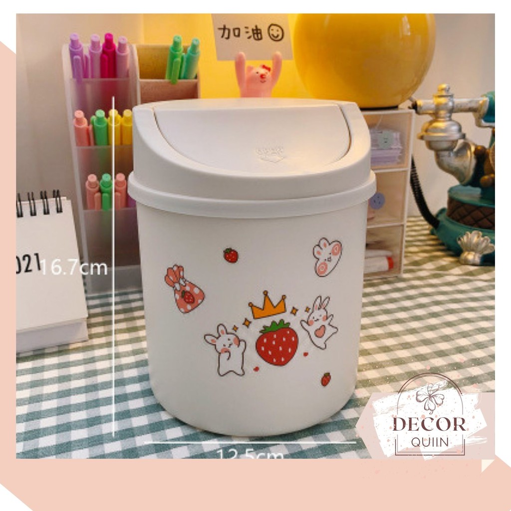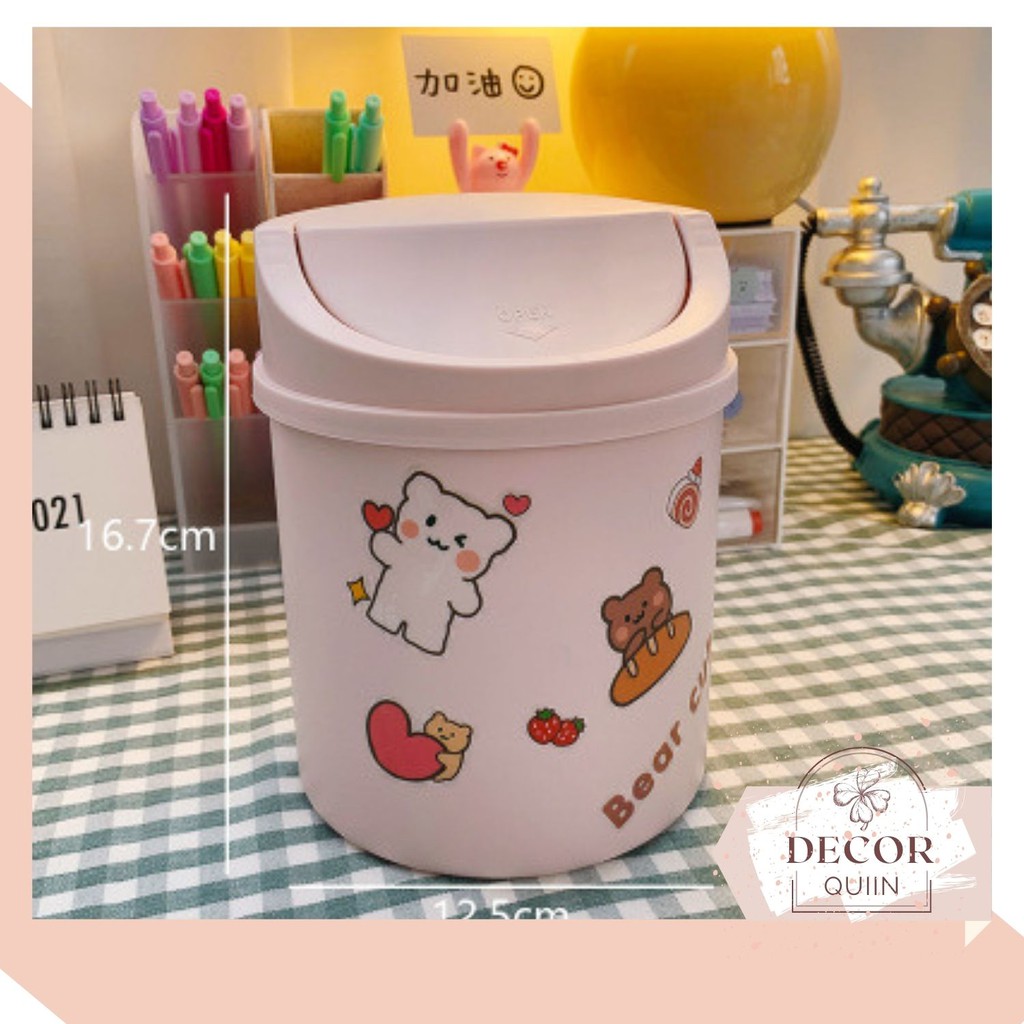 ❤️Thùng rác mini nắp lật️ thùng rác để bàn 16.8cm tiện dụng đa năng siêu dễ thương trang trí bàn học decor bàn làm việc