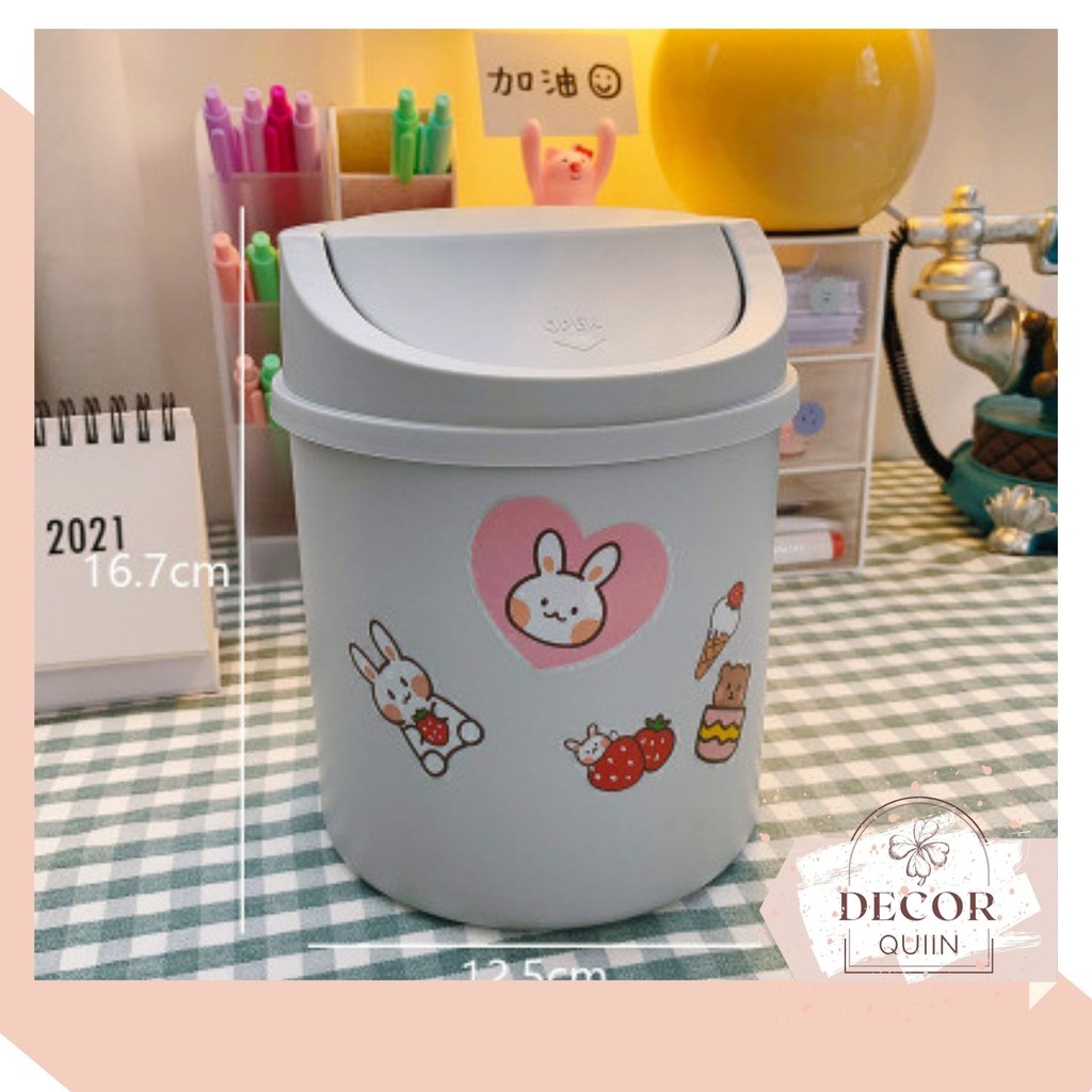 ❤️Thùng rác mini nắp lật🗑️ thùng rác để bàn 16.8cm ❤️ Đảm bảo sản phẩm như hình, là ảnh thật❤️Lưu ý: Phân loại Sticker chỉ có Sticker, không bao gồm thùng rác ạ(stiker nhằm mục đích dán lên thùng rác mini để thùng rác trở nên sinh động, xinh xắn hơn theo thẩm mĩ riêng của mỗi người, hoặc có thể dùng sticker dán vào những vật dụng khác của bạn)