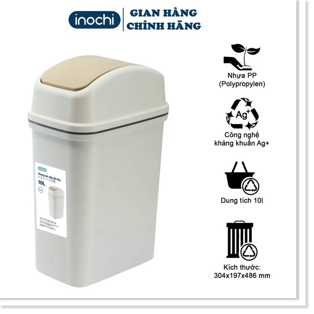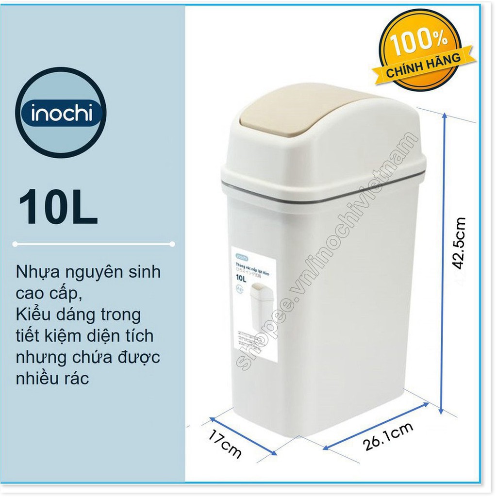 Thùng Rác -Thông Minh Nhựa Nắp Lật Inochi 10 Lít Rất Đẹp Làm Sọt Rác Văn Phòng Khách Sạn Gia Đình THRNL10L=== CAM KẾT CỦA INOCHIVIETNAM ===