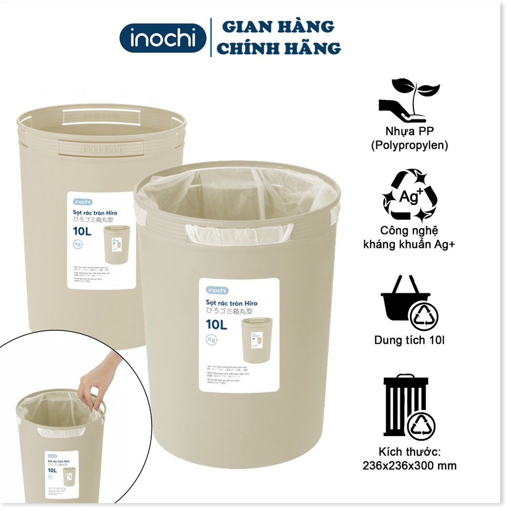 Thùng rác Mini -thông minh Nhựa Tròn Inochi 5 10 15 Lít Làm Sọt Rác Văn Phòng, Khách Sạn Đựng Rác Gia Đình SR10L=== CAM KẾT CỦA INOCHIVIETNAM ===