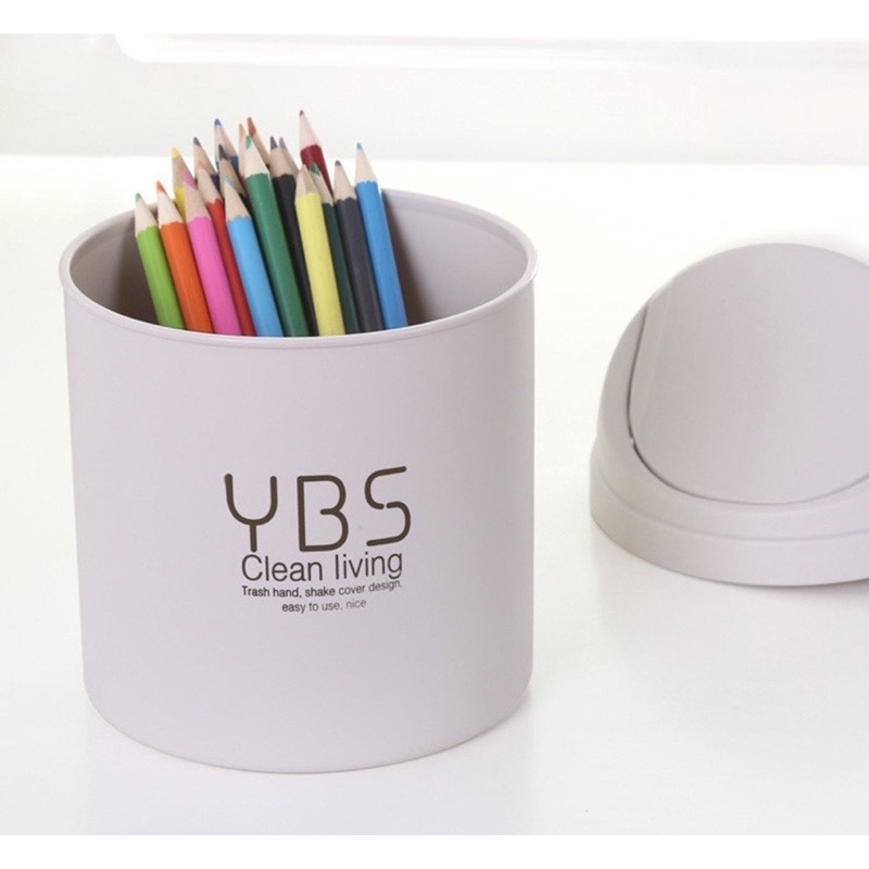 Thùng rác mini YBS để bàn văn phòng, Thùng rác nhỏ có nắp đậy, hoặc làm hộp đựng bút tiện lợi