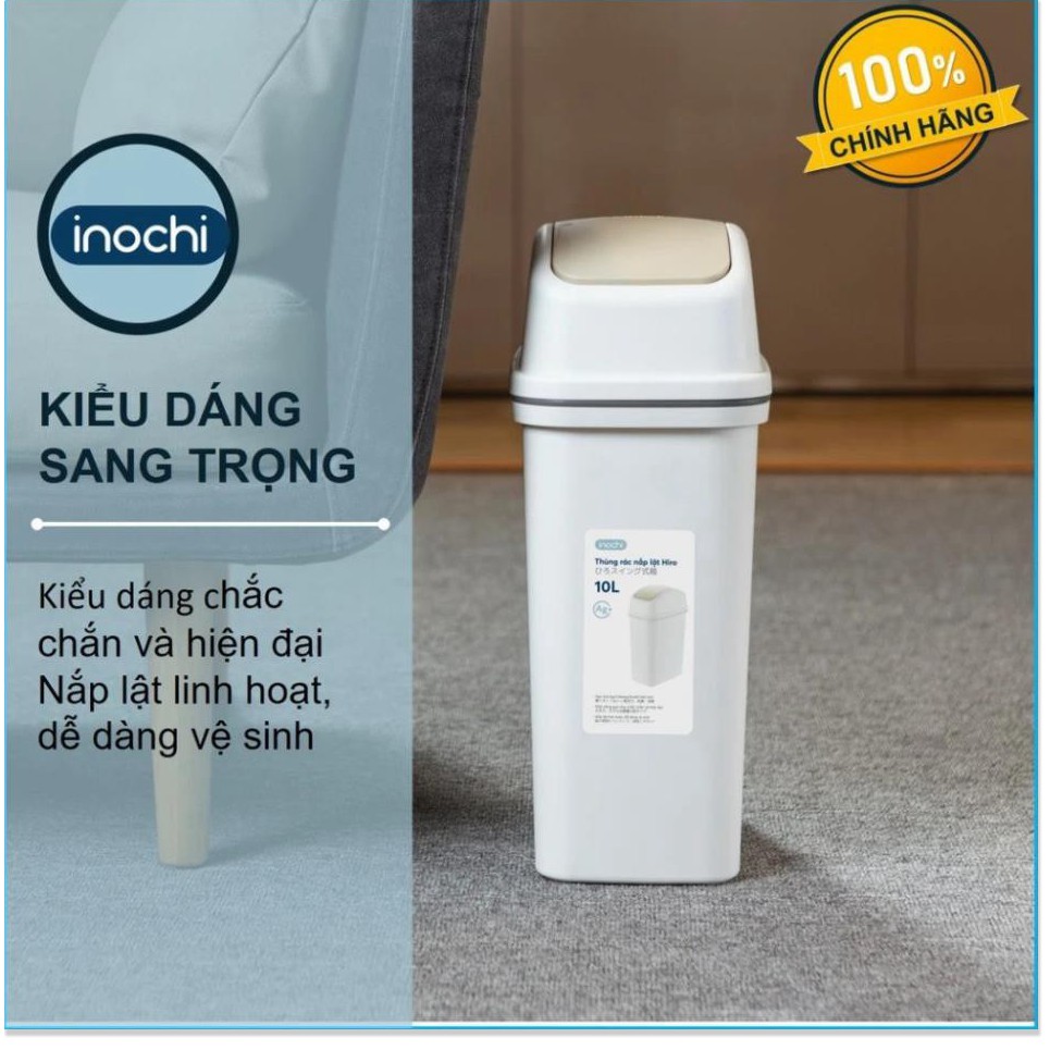 ===Thùng Rác Nắp Lật Hiro 5L-10L-15L Inochi===- Chất liệu: Nhựa PP (Polypropylen), LDPE nguyên sinh, hạt màu, inox và phụ gia kháng khuẩn Ag+