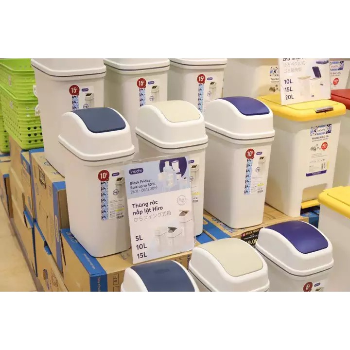 THÙNG RÁC NẮP LẬT HIRO KHÁNG KHUẨN INOCHI - Giao Màu Ngẫu Nhiên.