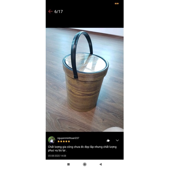 Giới thiệu Thùng rác nắp lật tròn màu nâu vân gỗ sang trọng tiện lợi