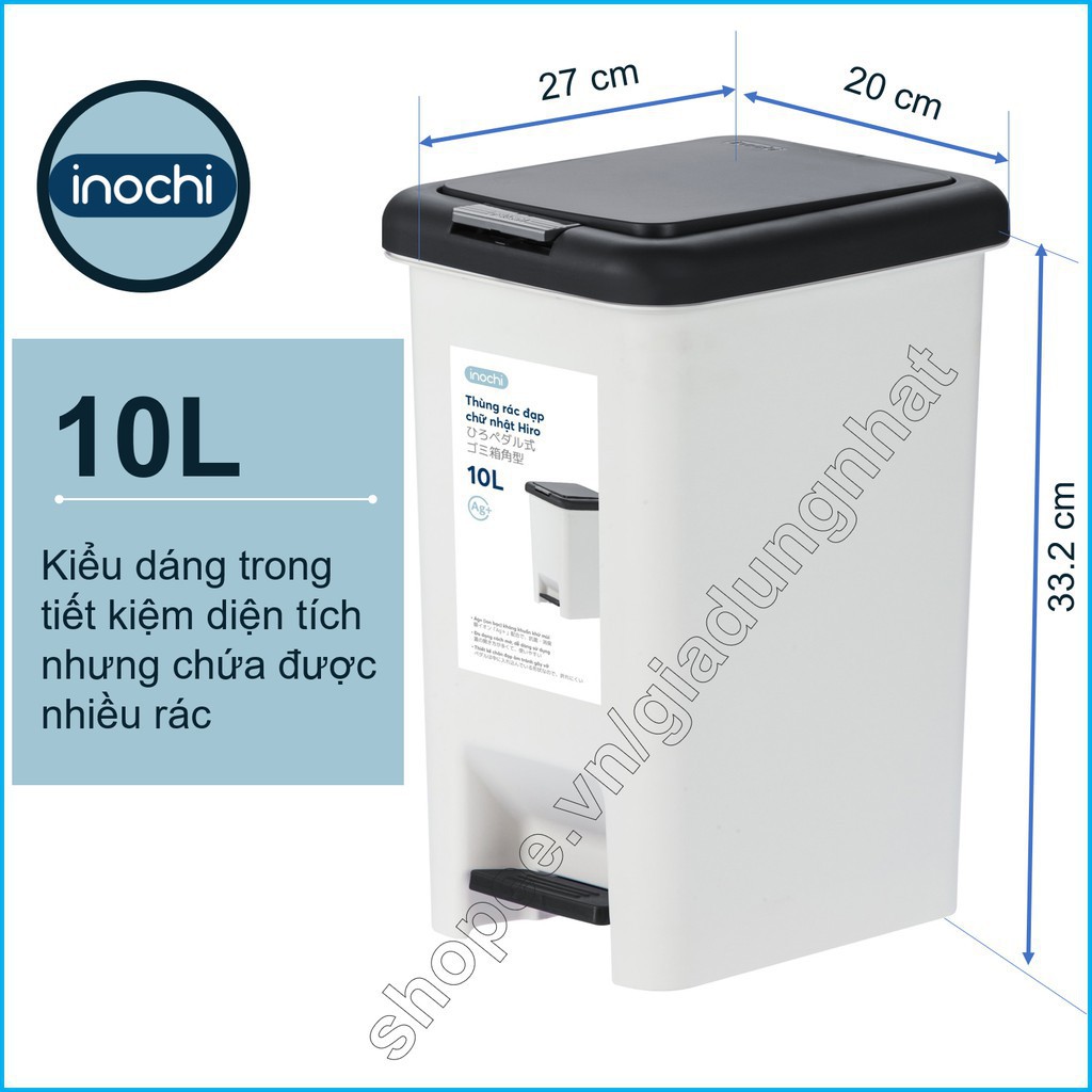 Nhà cửa & Đời sống > Dụng cụ chăm sóc nhà cửa > Thùng rác || Thùng Rác Nhựa Đạp Chân Nắp Đậy Chữ Nhật Inochi 10 Lít Làm Sọt Rác Văn Phòng,Đựng Rác Gia Đình, Trong Nhà, Ngoài Trời (tCòn hàng