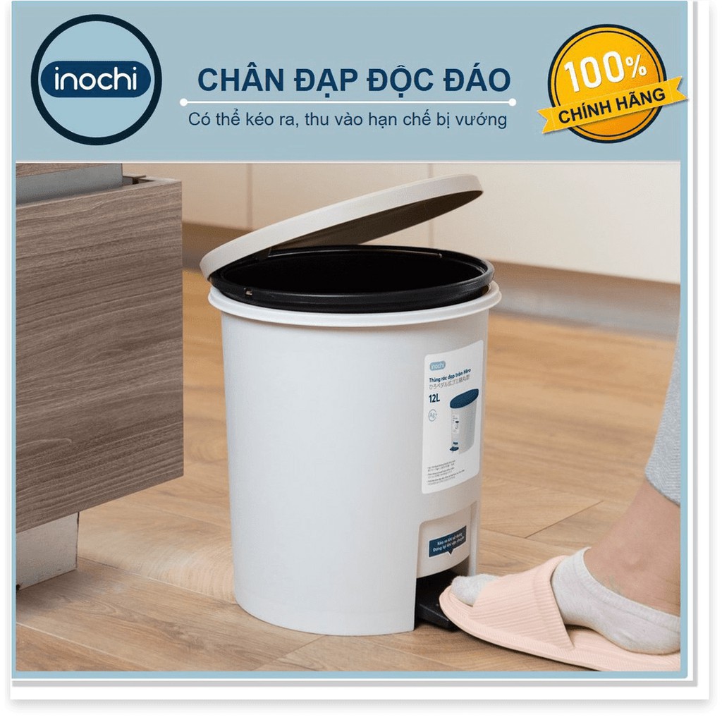 Thùng Rác Nhựa Đạp Chân Nắp Tròn INOCHI 6L 12 Lít Làm Sọt Rác Văn Phòng,Đựng Rác Gia Đình, Trong Nhà THRT6L
