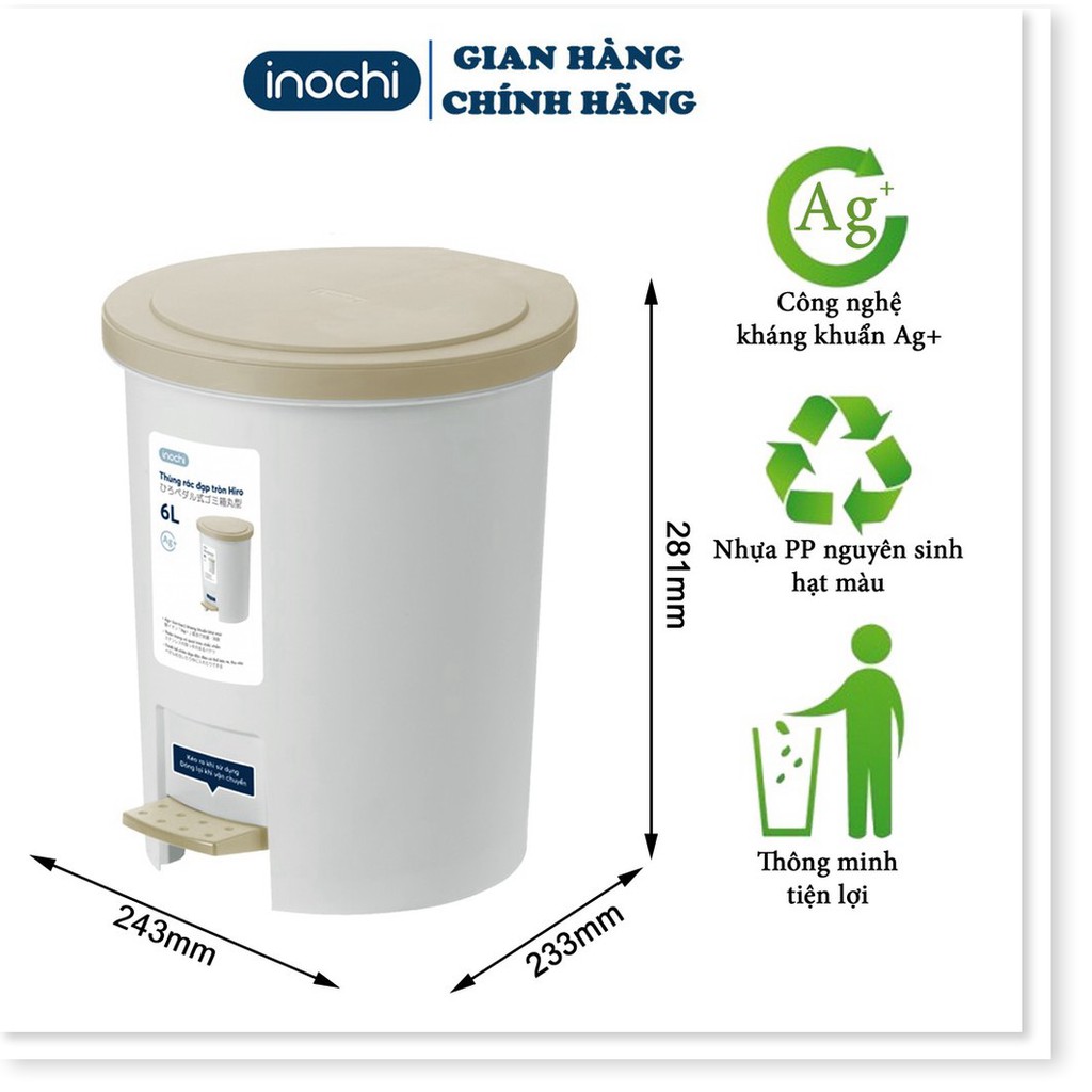 Thùng Rác Nhựa Đạp Chân Nắp Tròn INOCHI 6L 12 Lít Làm Sọt Rác Văn Phòng,Đựng Rác Gia Đình, Trong Nhà THRT6L=== CAM KẾT CỦA INOCHIVIETNAM ===