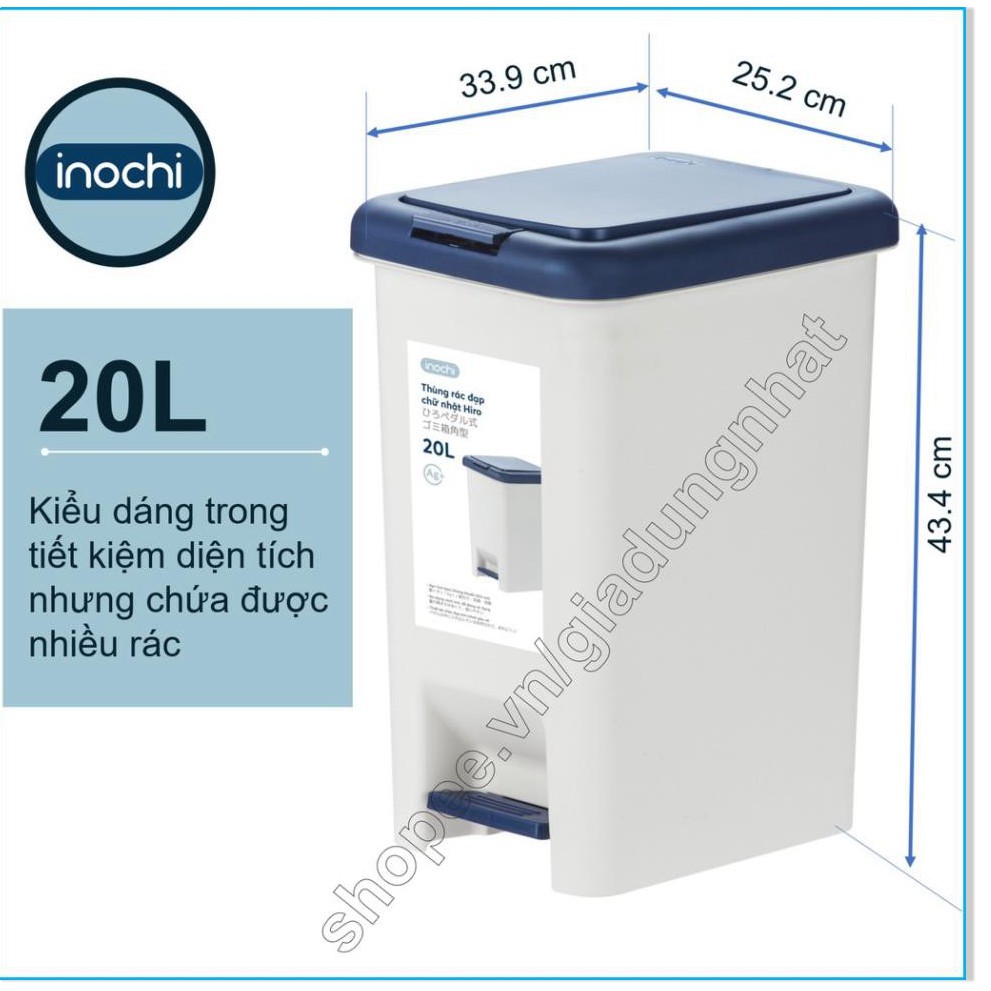 Nhà cửa & Đời sống > Dụng cụ chăm sóc nhà cửa > Thùng rác || Thùng Rác Nhựa Đạp Chân Nắp Đậy Chữ Nhật Inochi 20 Lít Làm Sọt Rác Văn Phòng,Đựng Rác Gia Đình, Trong Nhà, Ngoài TrờiCòn hàng