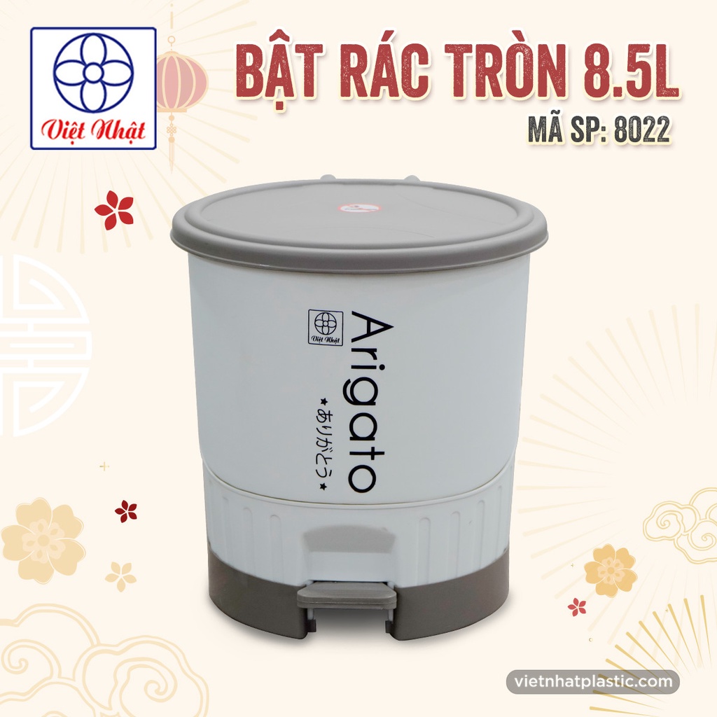 Thùng rác nhựa đạp chân thông minh Arigato 8.5Lít Nhựa Việt Nhật Cao Cấp 8022❤Để căn nhà gọn gàng, sạch sẽ thì Bật rác tròn 8.5L 8022 là “trợ thủ” đắc lực của mọi gia đình trong việc dọn dẹp ngày Tết. Là “em út” trong gia đình bật rác Việt Nhật nên sản phẩm được chăm chút, hoàn thiện tỉ mỉ đến tay người tiêu dùng với những ưu điểm nổi bật: