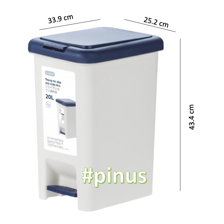 Thùng rác nhựa INOCHI , MẸ BÉ PINUS, Thùng rác nhựa đạp chân nắp chữ nhật kèm thùng phụ dung tích 10 đến 30L
