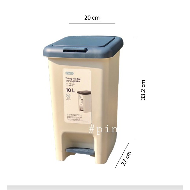 🌿Thùng rác đạp chữ nhật Hiro 20L: 252 x 339 x 434 mm