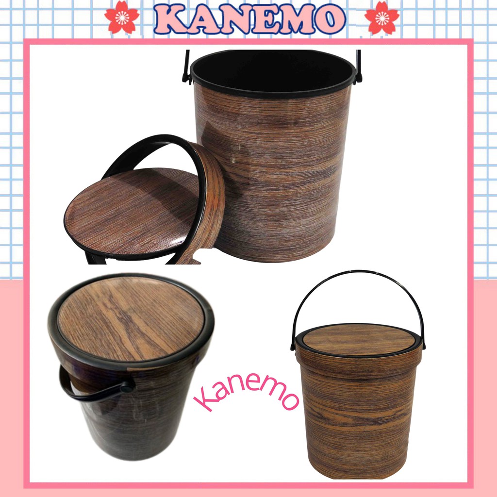 Thùng Rác Nhựa Kanemo Nắp Lật 8036 Nhựa Việt Nhật Kiểu Dáng Sang Trọng - Thùng Rác (bật rác) Tròn Vân Gỗ Nhựa Việt Nhật