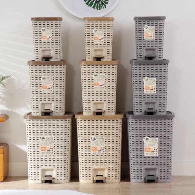 Nhà cửa & Đời sống > Dụng cụ chăm sóc nhà cửa > Thùng rác || Thùng Rác nhựa mây đan kiểu HQ đạp chân - 3 cỡCòn hàng