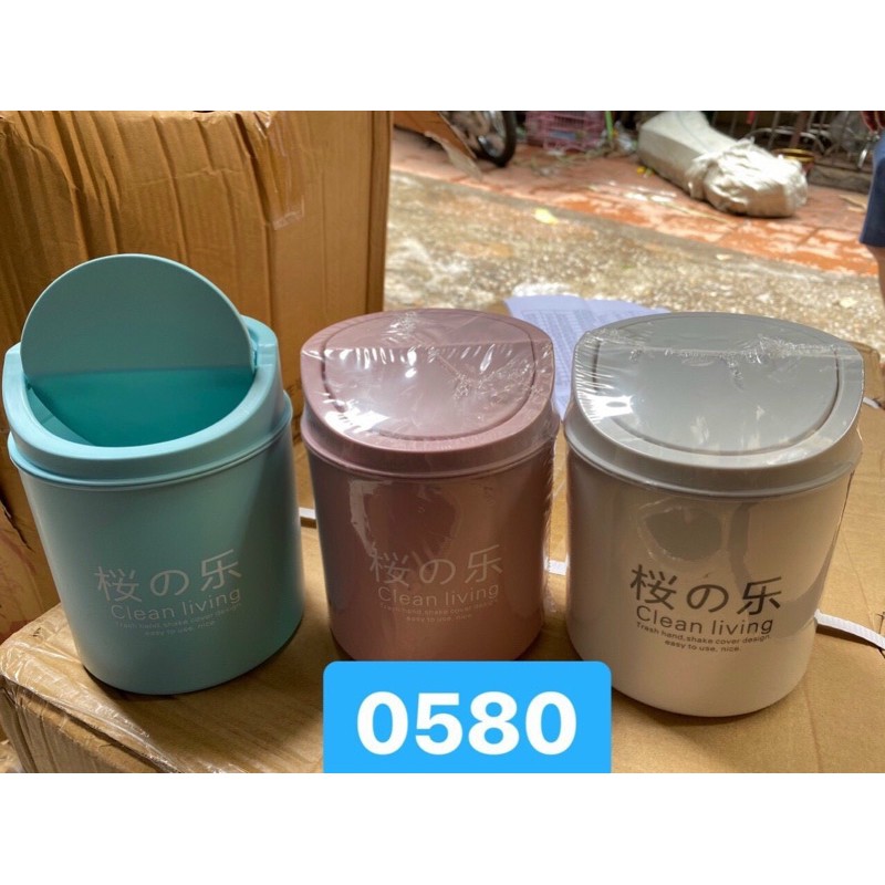 Thùng rác nhựa mini để bàn màu hồng có nắp lật tiện lợi, để trong văn phòng, sang trọng
