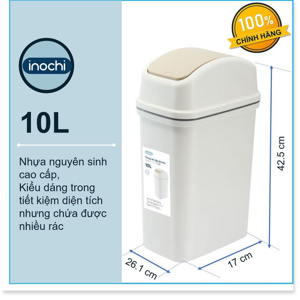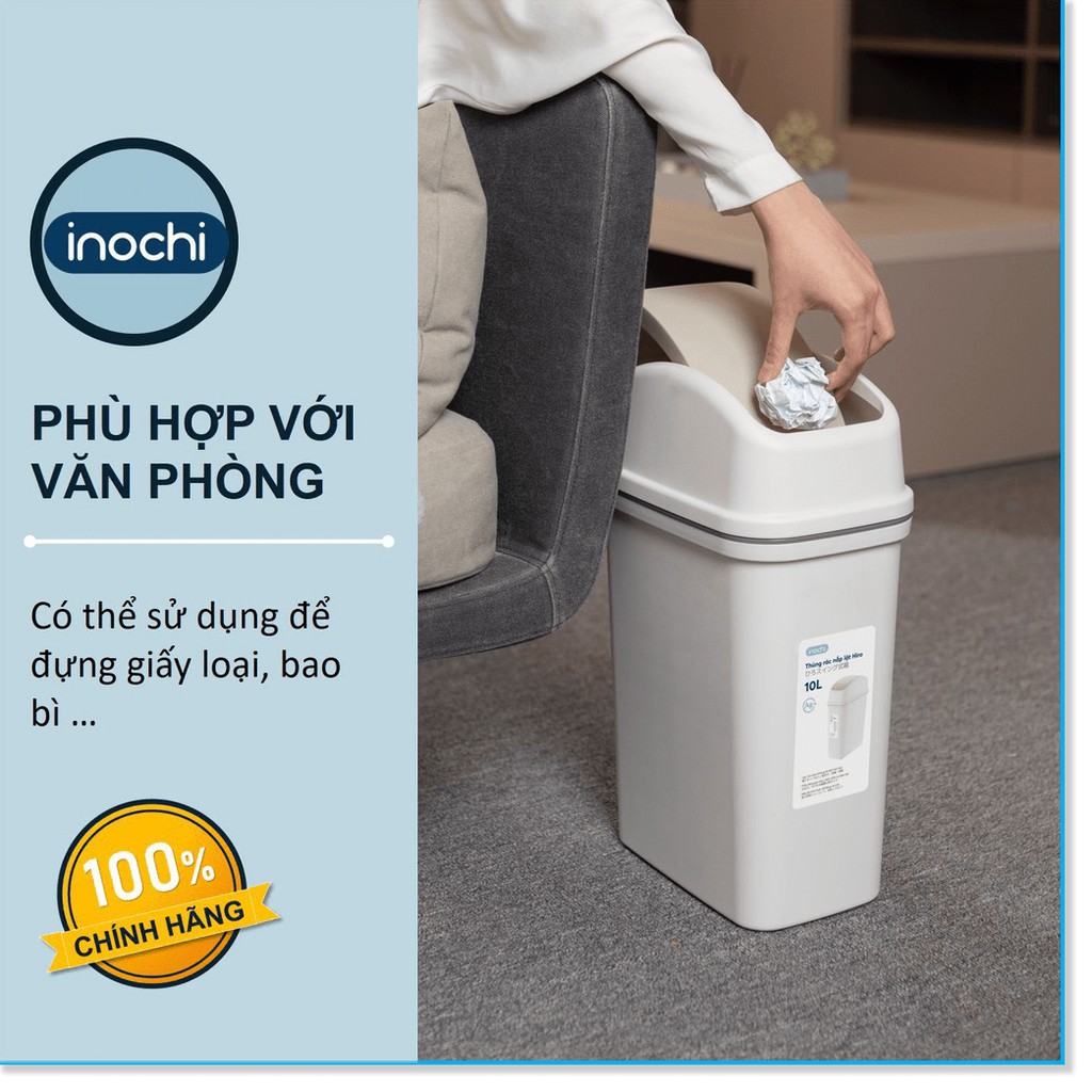 Thùng Rác Nhựa Nắp Lật Inochi 10 Lít Rất Đẹp Làm Sọt Rác Văn Phòng, Khách Sạn, Đựng Rác Gia Đình, Để Bàn Trong Nhà