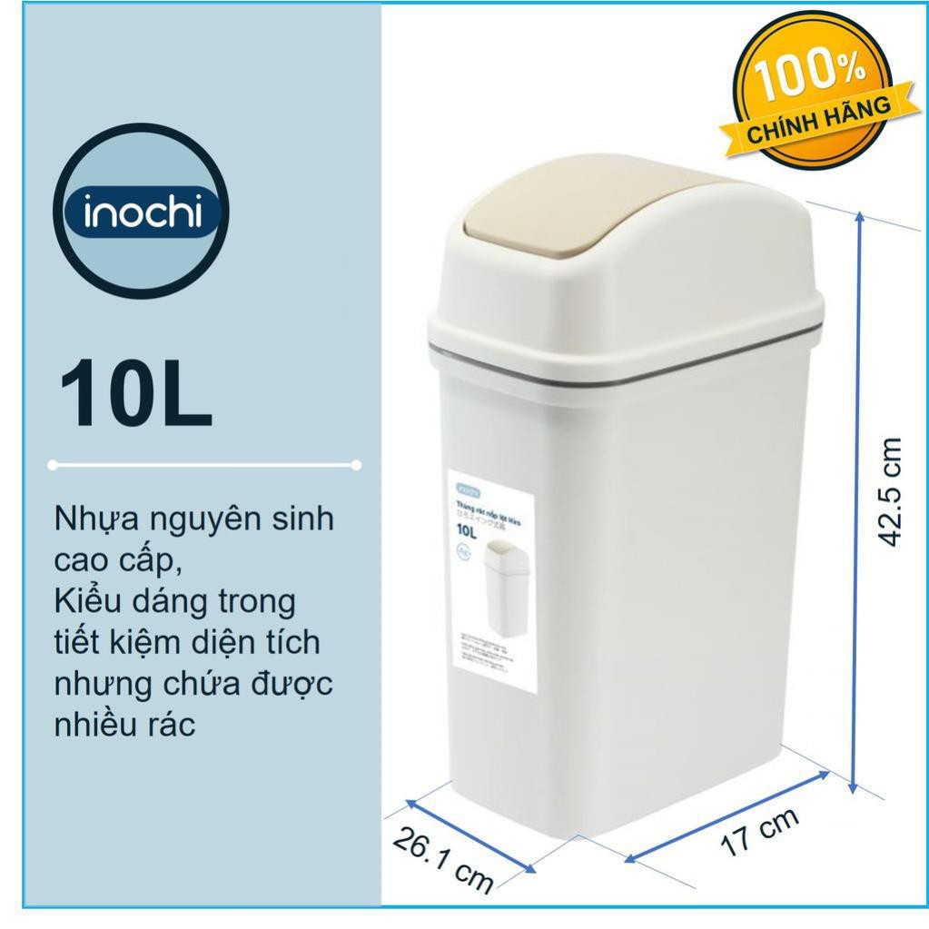 Thùng Rác Nhựa Nắp Lật Inochi 10 Lít Rất Đẹp Làm Sọt Rác Văn Phòng, Khách Sạn, Đựng Rác Gia Đình, Để Bàn Trong Nhà