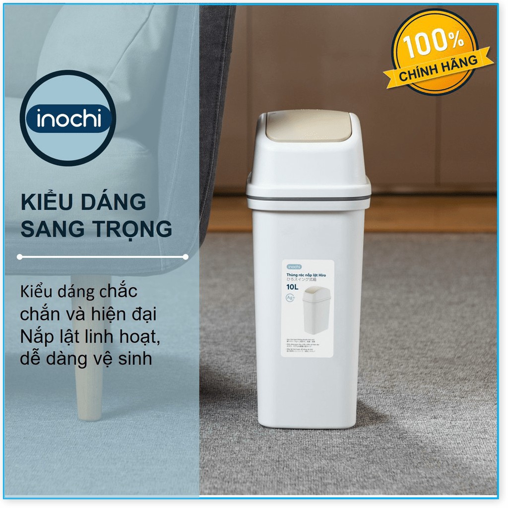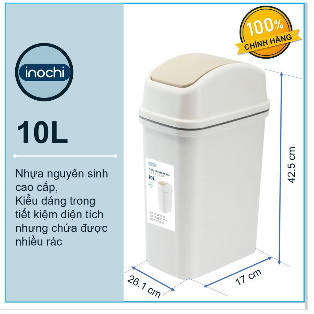 Thùng Rác Nhựa Nắp Lật Inochi 10 Lít Rất Đẹp Làm Sọt Rác Văn Phòng, Khách Sạn, Đựng Rác Gia Đình, Để Bàn Trong Nhà