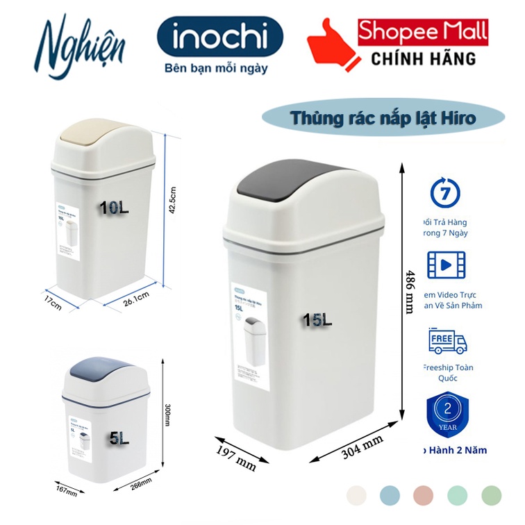 Thùng Rác Nhựa Nắp Lật Inochi 15 Lít Rất Đẹp Làm Sọt Rác Văn Phòng, Khách Sạn, Đựng Rác Gia Đình, Để Bàn Trong Nhà (tiêu