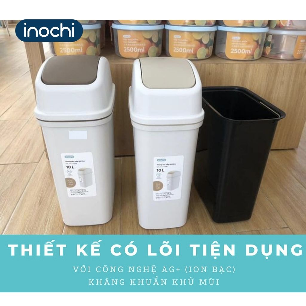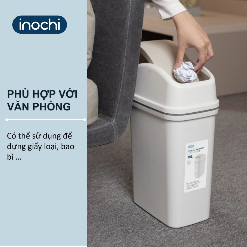 Thùng Rác Nhựa Nắp Lật INOCHI 10 Lít Nắp Linh Hoạt, Làm Sọt Rác Cho Văn Phòng, Trong Nhà, Ngoài Trời Nhỏ Gọn