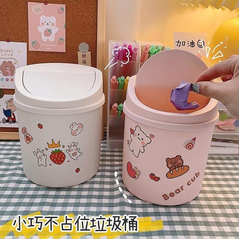 ❤️ THÙNG RÁC NHỰA NẮP LẬT MINI ĐỂ BÀNDECOR DỄ THƯƠNG ( tặng kèm sticker)
