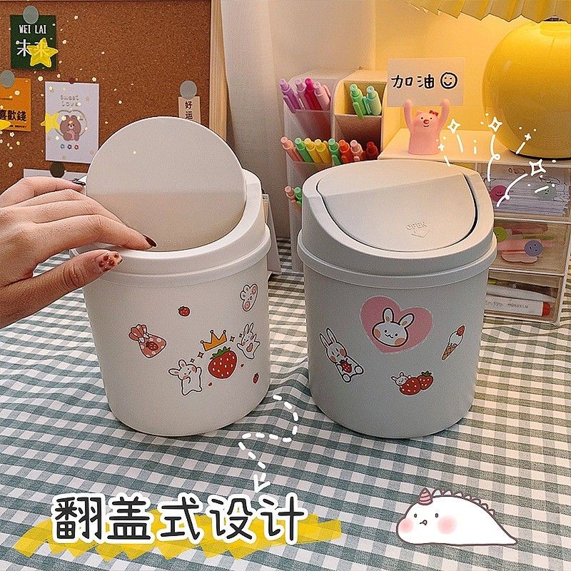 ❤️ THÙNG RÁC NHỰA NẮP LẬT MINI ĐỂ BÀNDECOR DỄ THƯƠNG ( tặng kèm sticker)