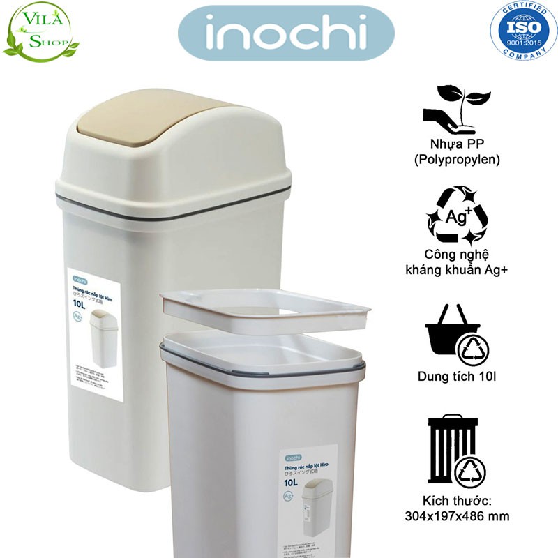 ---ViLaShop Kính Chào Quý Khách----✅ Thùng Rác Nhựa Thông Minh Nắp Lật Inochi 10 Lít:
