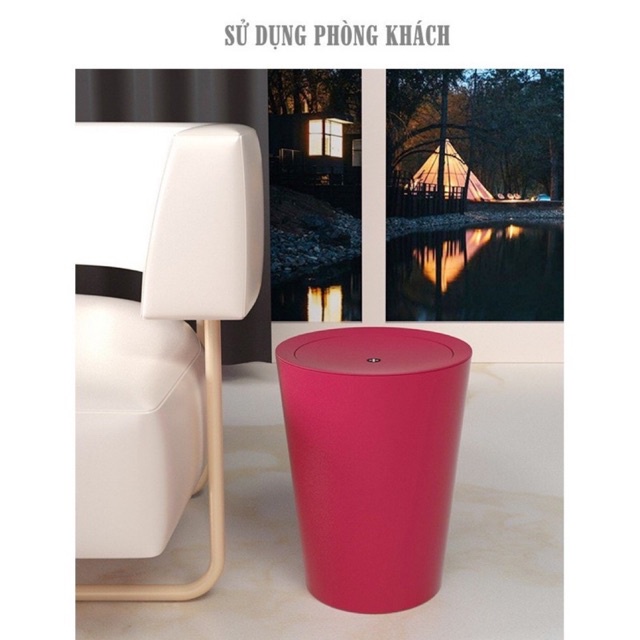 Thiết kế nắp lật xoay 360 độ, có thể nhẹ nhàng bỏ rác vào ngay bên cạnh, dùng văn phòng, phòng khách hay phòng ăn đều được.
