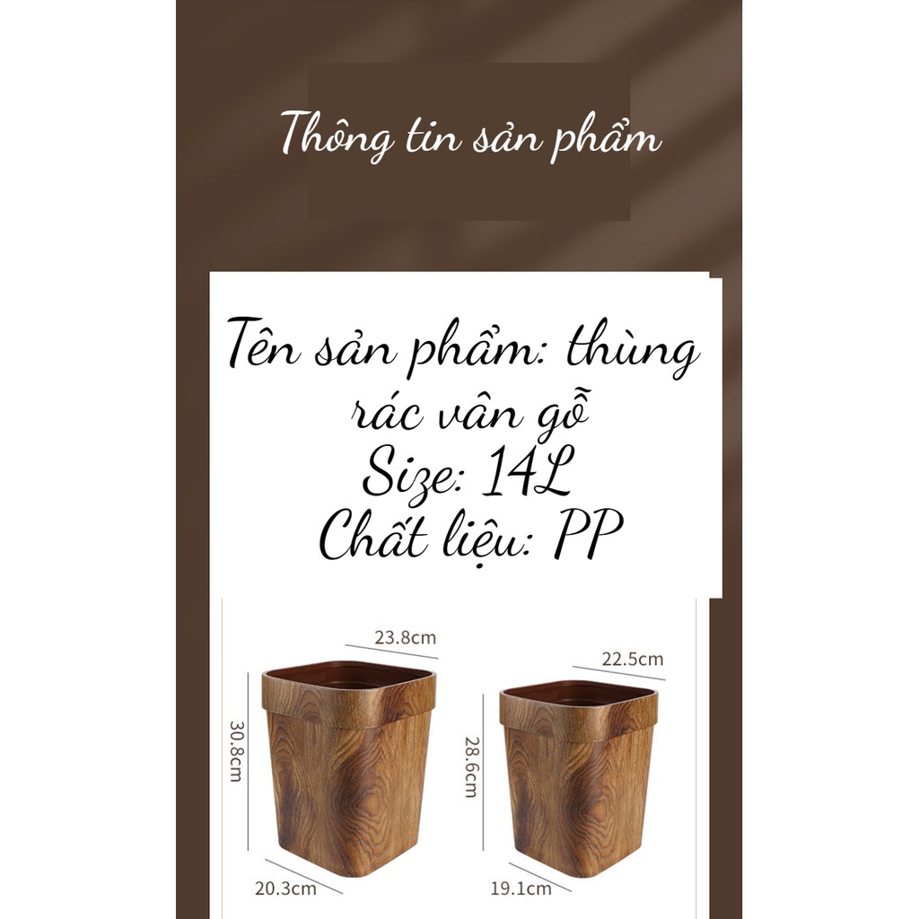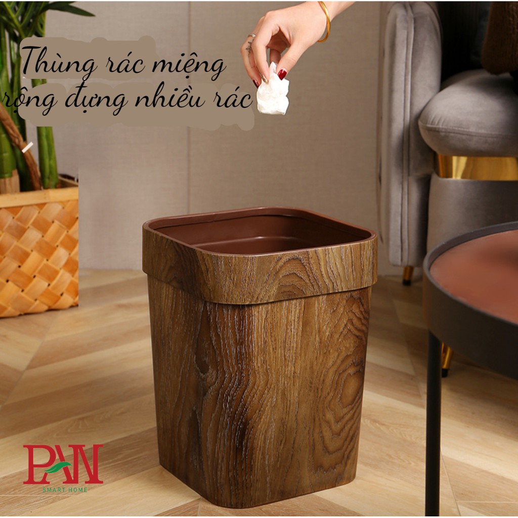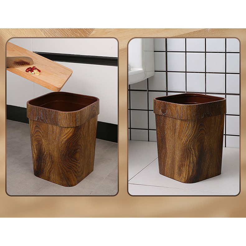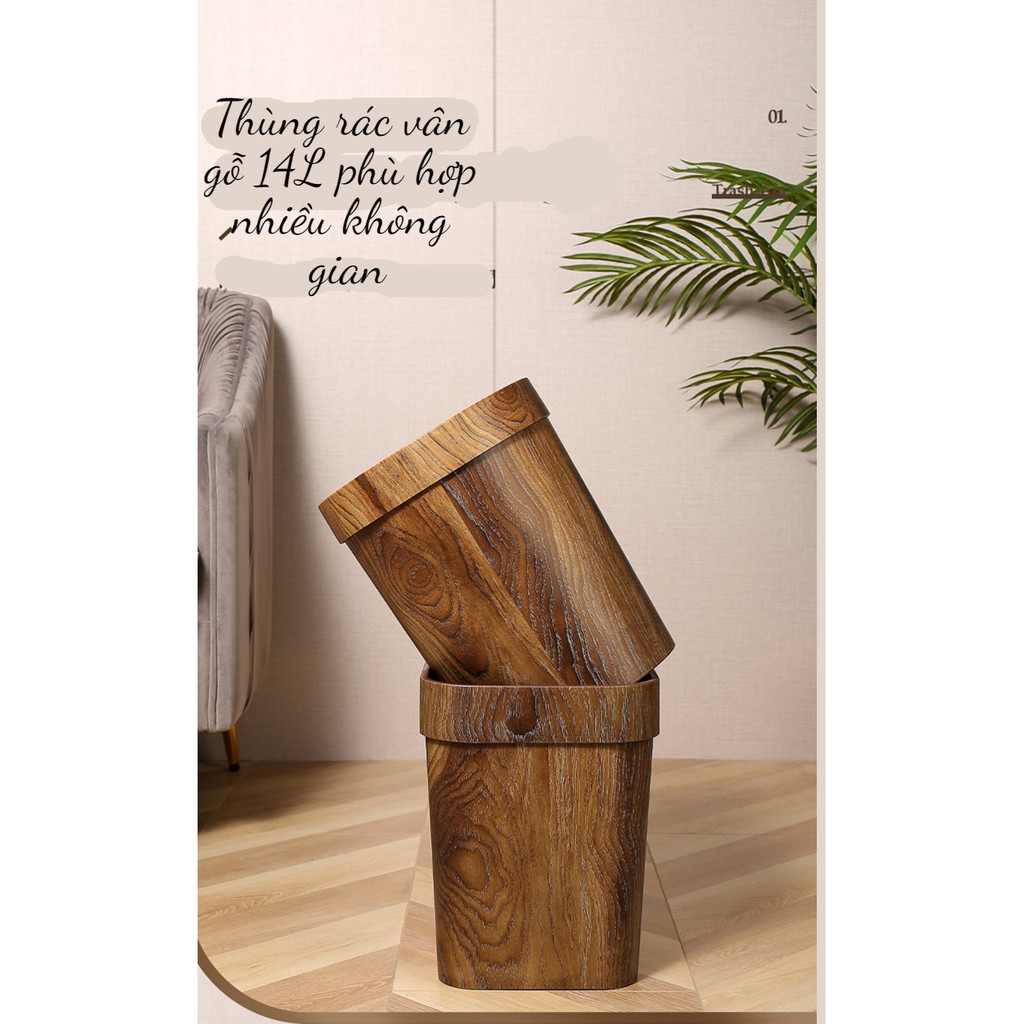 Thùng rác nhựa nắp vuông cao cấp 14L thùng rác vân gỗ cực đẹp thùng rác văn phòng thùng rác khách sạn thùng rác nhà nghỉ