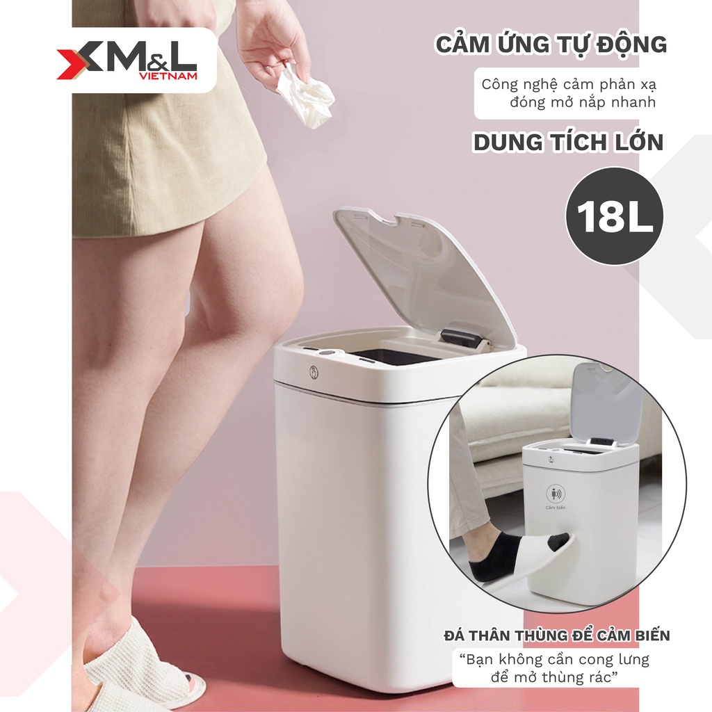 Thùng rác nhựa 𝑭𝒓𝒆𝒆𝒔𝒉𝒊𝒑 Thùng rác thông minh cảm ứng 18 lít M&L tiện lợi màu ghi xám