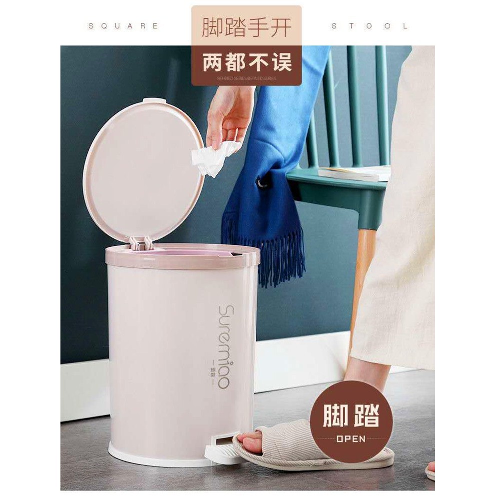 Thùng rác nhựa tròn đạp chân 6l Suremiao có nắp đậy cao cấp, sang trọng