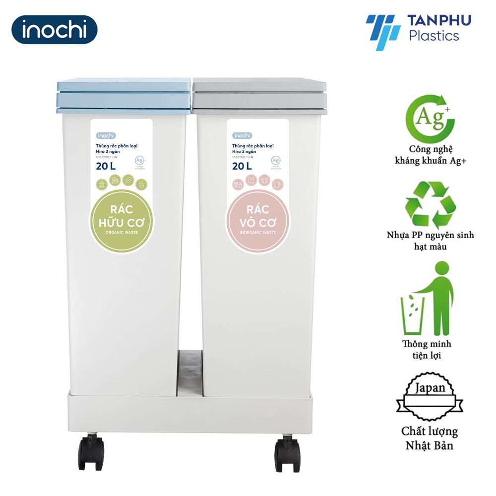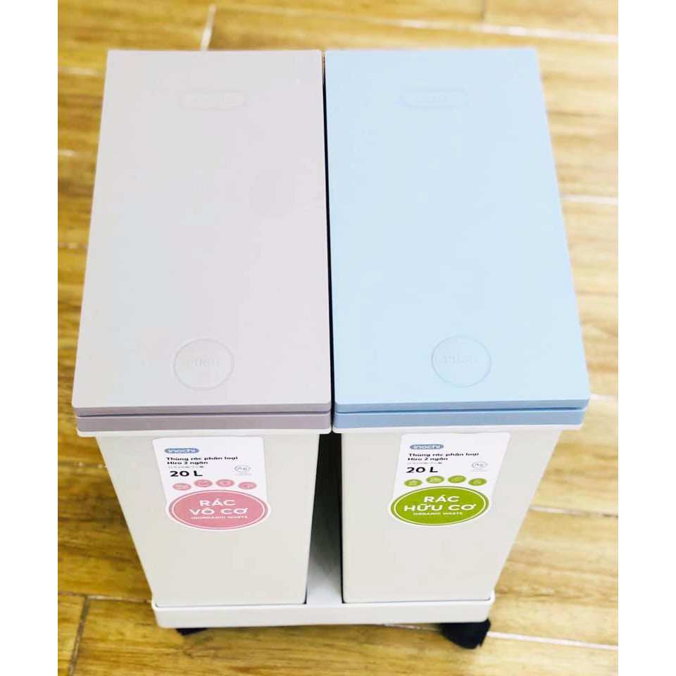 Nhà cửa & Đời sống > Dụng cụ chăm sóc nhà cửa > Thùng rác || Thùng rác phân loại Inochi Hiro 2 ngăn 40 lít xuất Nhật - Kháng khuẩn, khử mùiCòn hàng