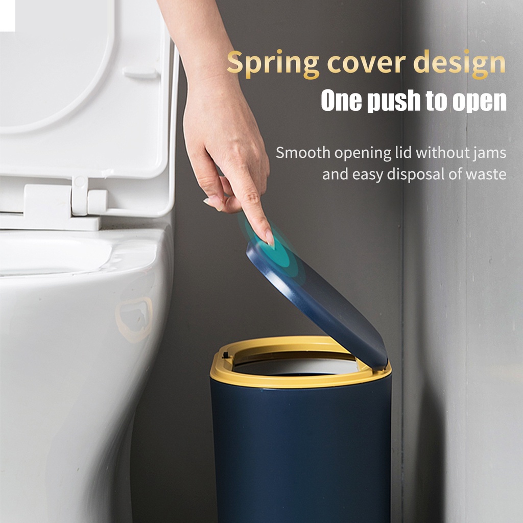 Thiết kế nắp bật, một lần nhấn để mở, đóng mở êm ái không bị kẹt, tiện lợi khi vứt rác