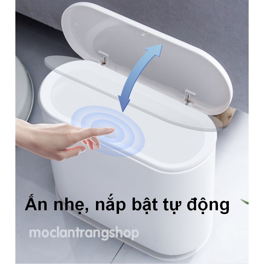 Thùng rác siêu mỏng cho nhà tắm phòng vệ sinh, phân loại rác phong cách Bắc Âu, nhựa 2 lớp cao cấp màu đen trắng có nắp