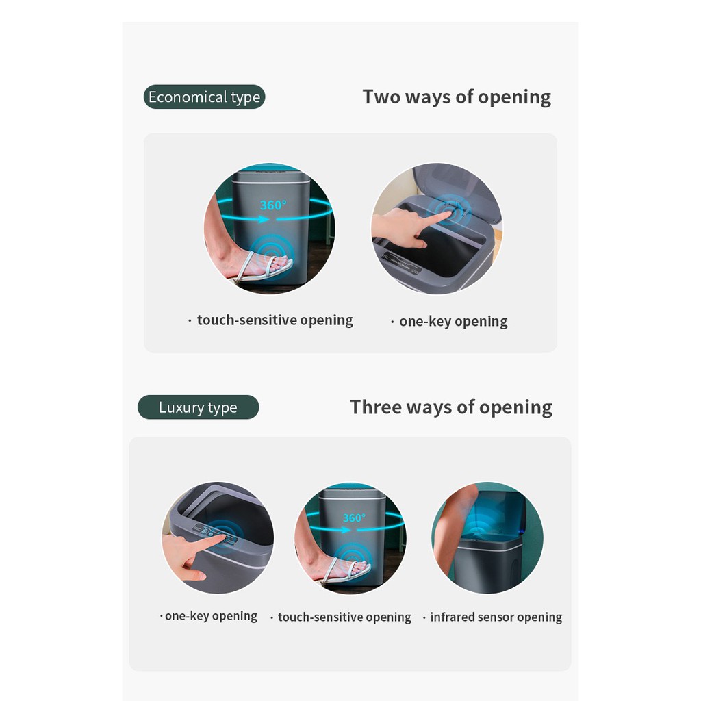 -Thiết kế cảm ứng, Sau khi bật công tắc máy sẽ tự cám biển khi khua tay hoặc gõ vào thân thùng rác, hạn chế các vi khuẩn có hại gây bệnh
