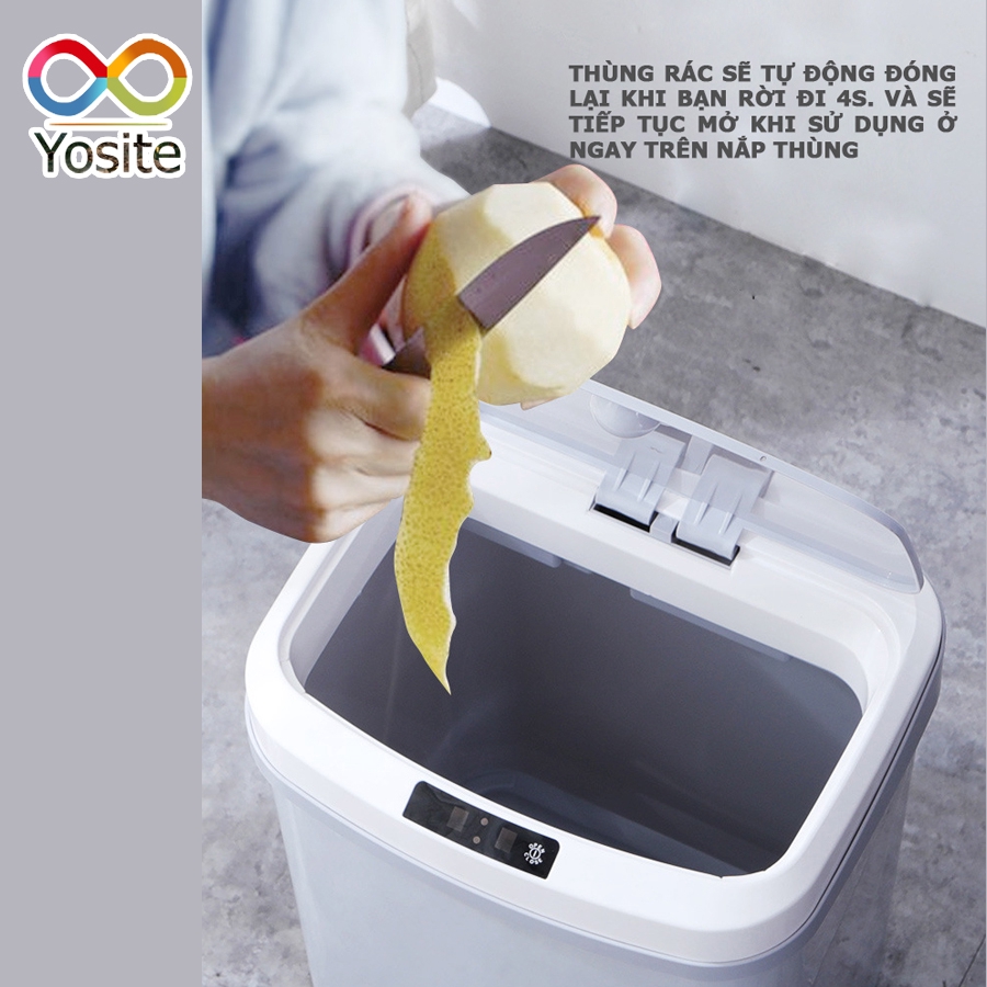 - Thiết kế cảm ứng giúp bạn không cần chạm tay mở nắp, hạn chế các vi khuẩn có hại gây bệnh