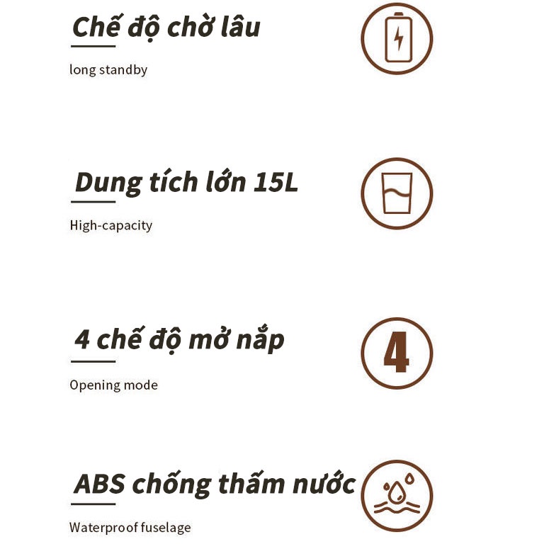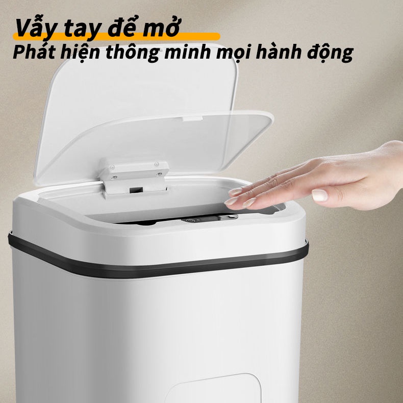 thùng rác tự động thông minh,thùng rác cảm ứng,cảm biến,kháng khuẩn,đóng mở 0.3S,dung tích 15L (LO13)