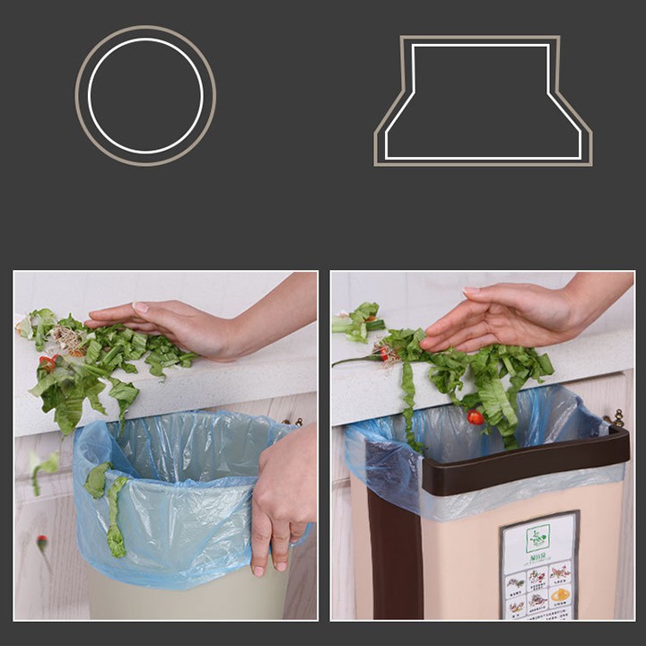 - Dễ dàng lắp đặt, chỉ cần gắn thùng rác vào ngăn kéo tủ hoặc cửa bếp, cửa tủ, cửa phòng