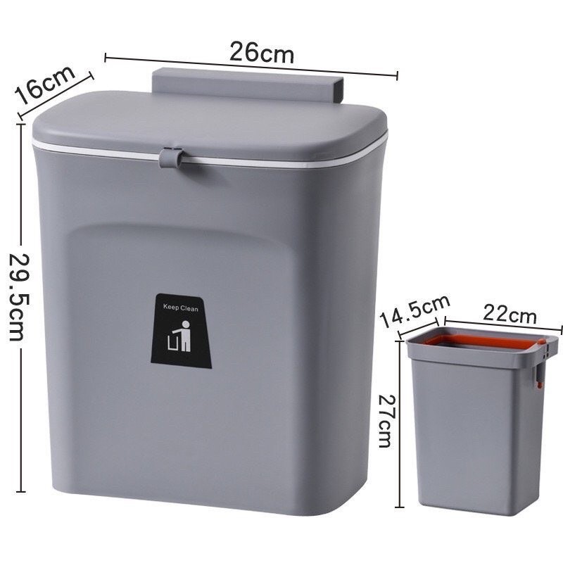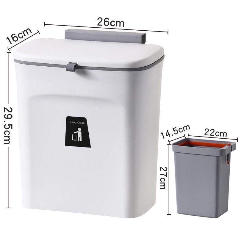 Thùng rác thông minh MẪU MỚI có nắp đậy kèm THÙNG NHỎ-Cài cánh tủ bếp-Treo gắn tủ bếp -Dán tường