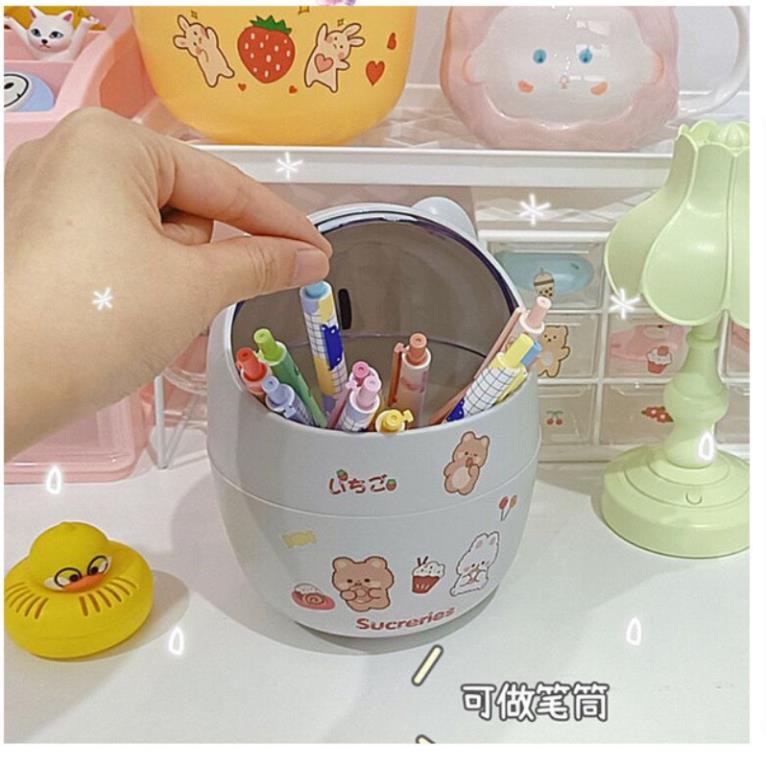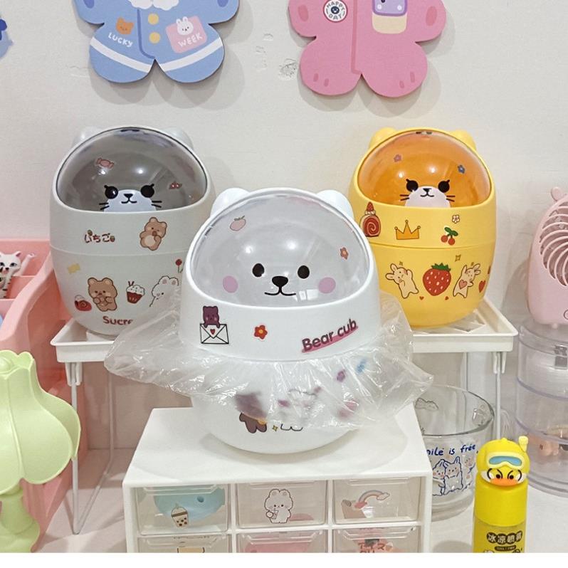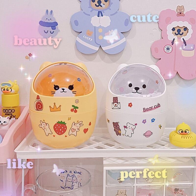 Thùng rác mini , hộp đựng bút để bàn hình gấu có nắp dễ thương dùng decor bàn học