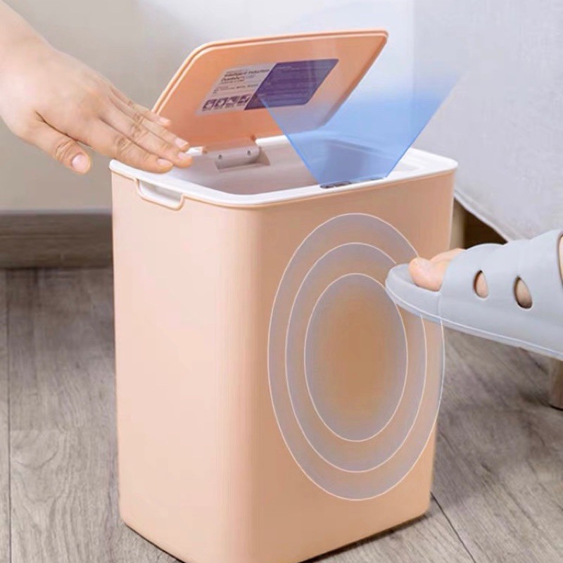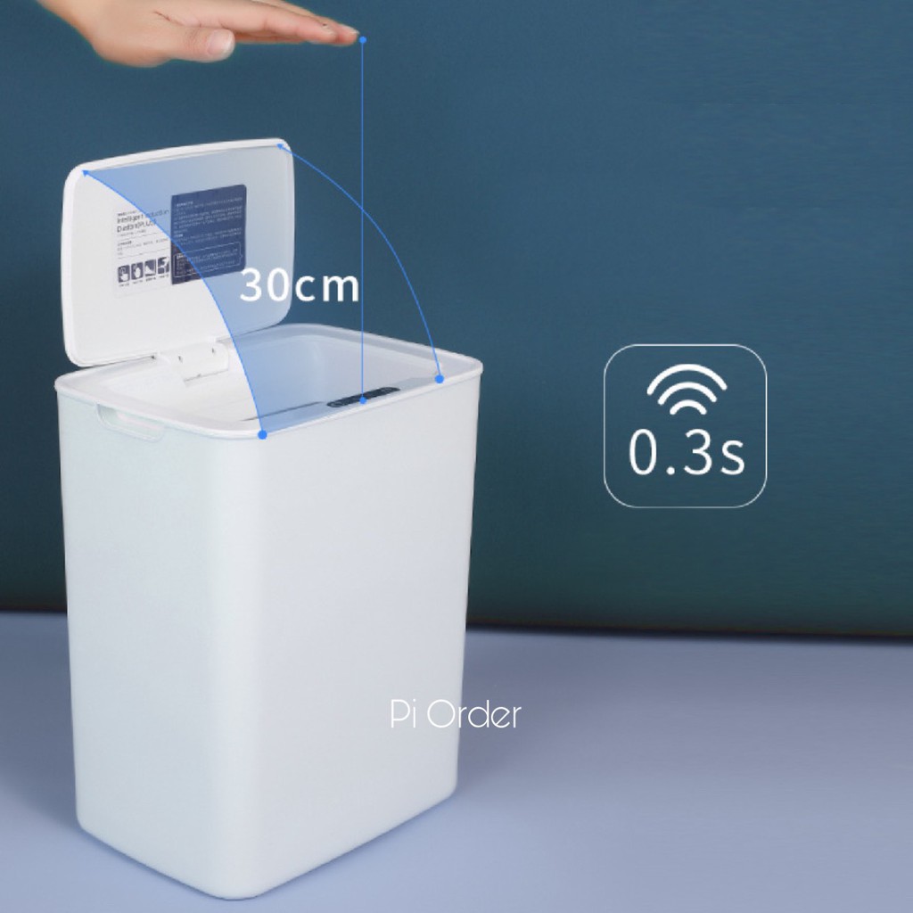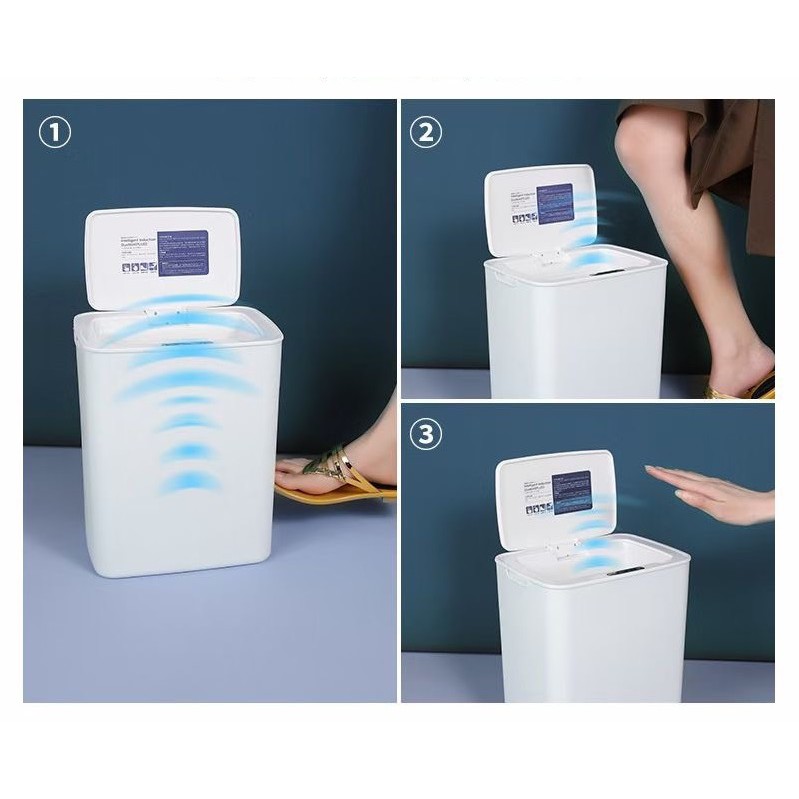 - Tự động mở nắp với cảm ứng hồng ngoại khi tay bạn cách thùng rác 6-30cm