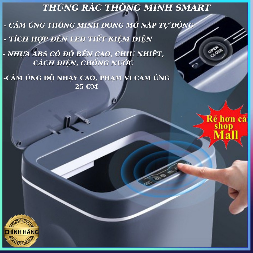 Thùng rác thông minh smarthome , cảm ứng tiện lợi đóng mở 0.3S , thùng rác kháng khuẩn dung tích 15L , BH 12 THÁNG