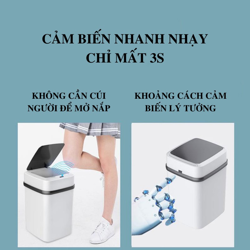 - Thiết kế cảm ứng giúp bạn không cần chạm tay mở nắp, hạn chế các vi khuẩn có hại gây bệnh