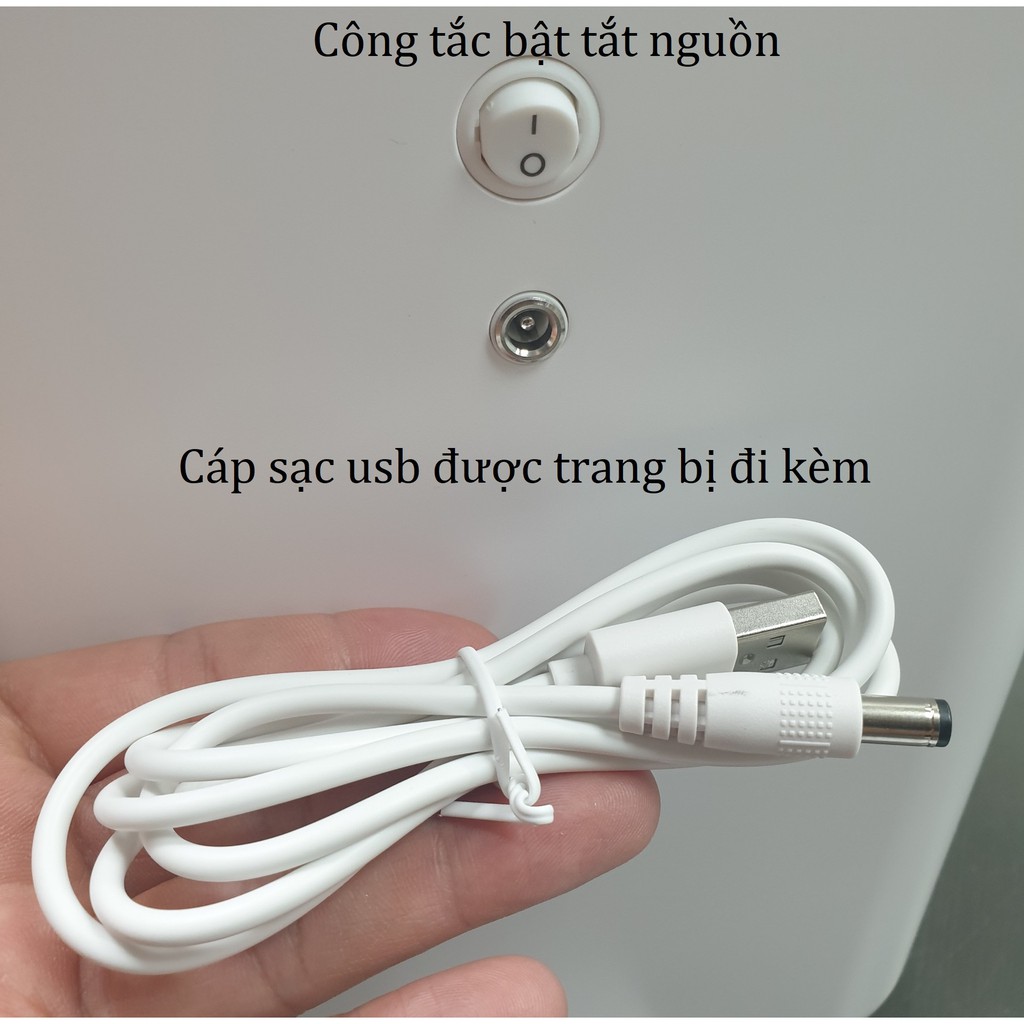 Nguồn sạc vào: DC 5V - 2A (có đi kèm theo cáp sạc usb, không kèm theo củ sạc nhưng chúng ta có thể sử dụng chung cùng với các loại củ sạc của điện thoại hoặc máy tính bảng)