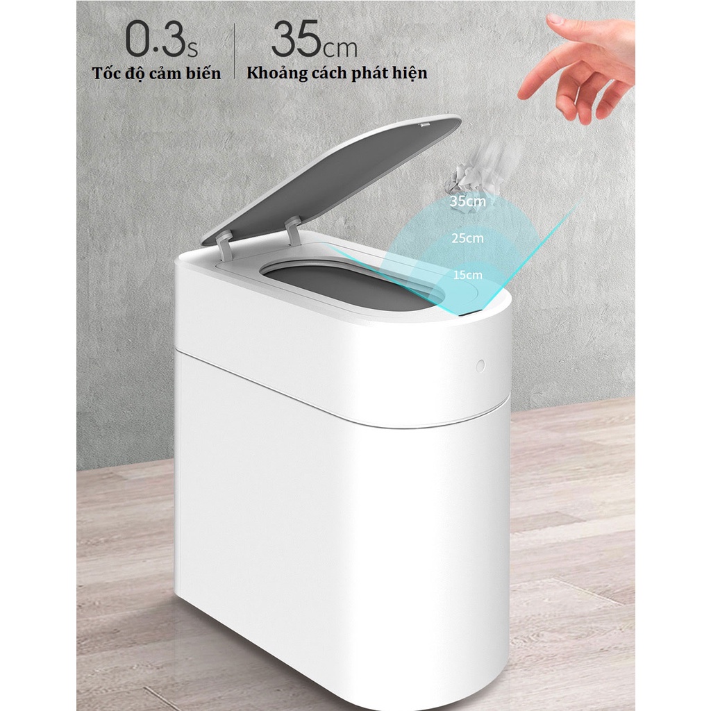 Tránh xa vi khuẩn! Không cần phải chạm vào nắp. Khoảng cách cảm nhận của thùng rác là 35 cm.
