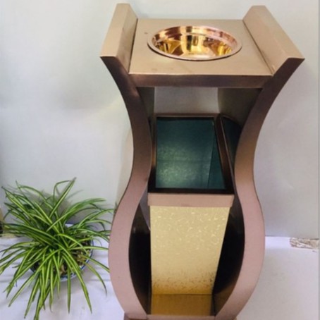 Giới thiệu Thùng rác trang trí sảnh lễ tân màu vàng hồng, inox cao cấp 304.