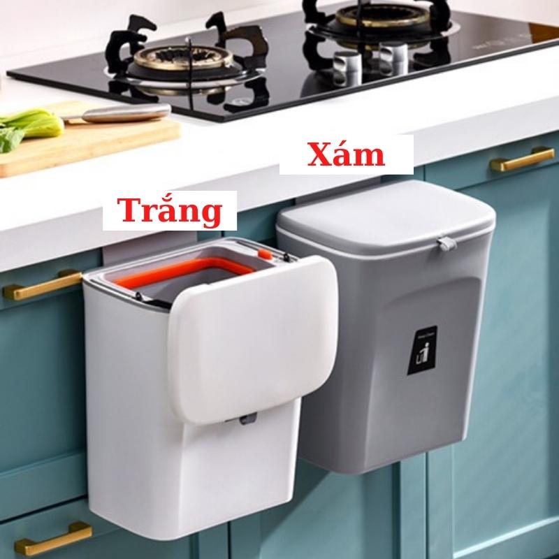 Thùng rác treo tủ bếp có nắp đậy thùng rác dán tường nhà vệ sinh dung tích 9 lít
