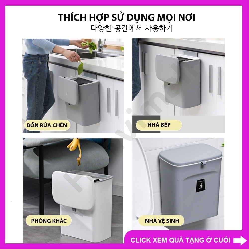 1 . Thông tin sản phẩmTên sản phẩm : Thùng rác treo tủ bếp có nắp đậy thông minh, treo tường dán tường, trượt cửa bếp cơ động