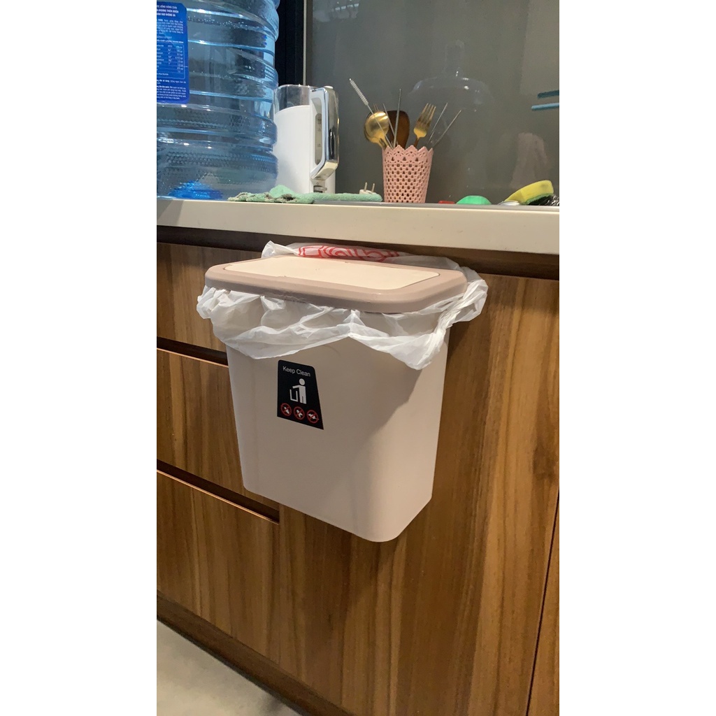 * Thiết kế thùng đựng rác thông minh: treo được trên cánh tủ kệ bếp và không ảnh hưởng tới việc đóng mở cửa tủ.