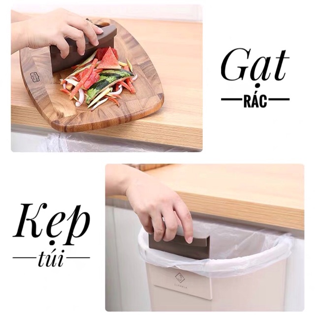 - Kèm miếng kẹp túi rác + gạt rác 2 in 1